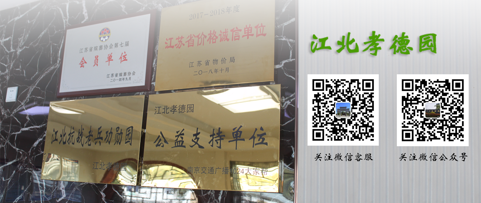 江北孝德園位于南京市六合區(qū)殯儀館南側(cè),是經(jīng)江蘇省民政廳批復(fù)、六合區(qū)唯一一家正規(guī)的經(jīng)營(yíng)性公墓,2018年榮獲江蘇省物價(jià)局頒發(fā)的“江蘇省價(jià)格誠(chéng)信單位”,是江蘇省殯葬協(xié)會(huì)會(huì)員單位、南京交通廣播1024大家?guī)凸嬷С謫挝?,也是江北地區(qū)最后一塊碑式陵園。